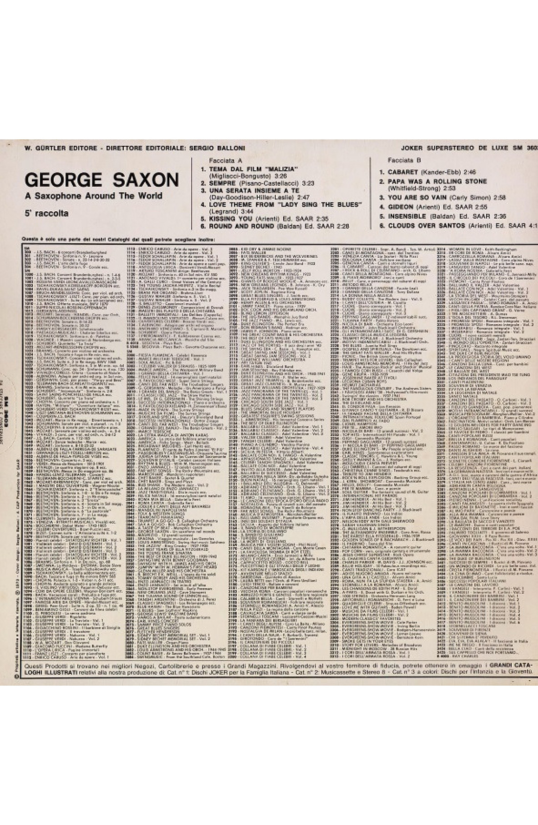 1973 - Joker - serie: A Saxophone Around The World: 5 - Seconda stampa italiana - G / G+