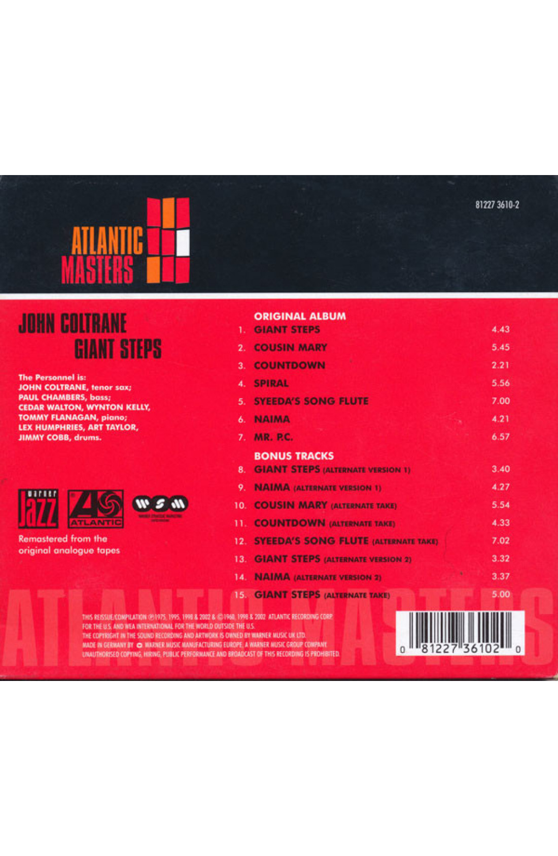 1960 - Atlantic - Ristampa 2002 - Digipack - DISCO CONSIGLIATO AMADEUS