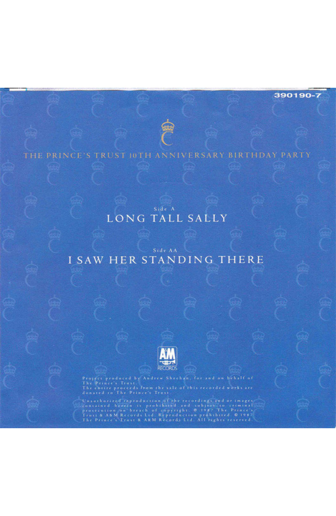 1987 - A&M Records - SINGLE 7" 45rpm - Singolo promozionale contenuto all'interno della Limited Edition (LP +7") di "Recorded Highlights Of The Prince's Trust 10th Anniversary Birthday Party" (Artisti Vari) - Prima stampa tedesca - VG+ / VG